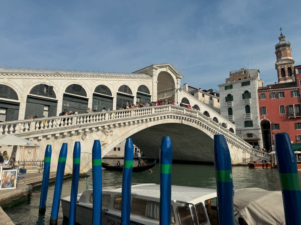 Vom Campo San Luca sind wir dann mit einem Eis in der Hand zur Rialtobrücke geschlendert. Ja natürlich war es dort voll. Aber hallo…es wäre eher traurig und ungewöhnlich, wenn man sich auf dieser weltbekannten Brücke nicht seinen Platz in der ersten Reihe erkämpfen müsste. Aber so war voll war es bei uns auch nicht. Wir standen entspannt 10-15 Minuten auf der Brücke und haben einfach nur das Gondeltreiben auf dem Canale Grande betrachten. Es war definitiv unvergesslich und sollte jeder mal gesehen haben.